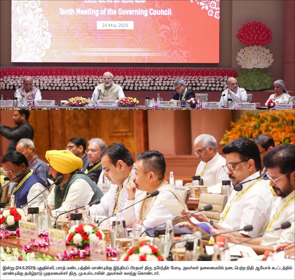 பிரதமர் மற்றும் ஒன்றிய அமைச்சர்கள் பங்கேற்றுள்ள இந்தக் கூட்டத்தில் தமிழ்நாட்டின் வளர்ச்சி குறித்து சுருக்கமாகச் சொல்ல விரும்புகிறேன். சமத்துவம் மற்றும் சமூகநீதி அடிப்படையில், அனைவரையும் உள்ளடக்கிய மற்றும் நீடித்த பொருளாதார வளர்ச்சிதான் எங்களுடைய தொலைநோக்குப் பார்வை! “எல்லோர்க்கும் எல்லாம்” என்ற அந்தக் குறிக்கோளுக்குப் பெயர்தான் திராவிட மாடல்!