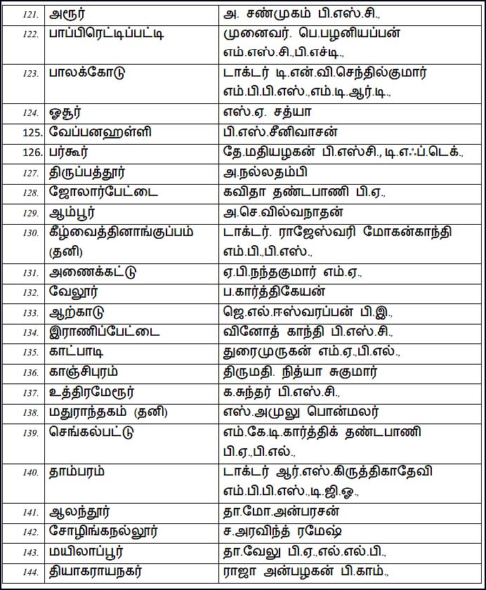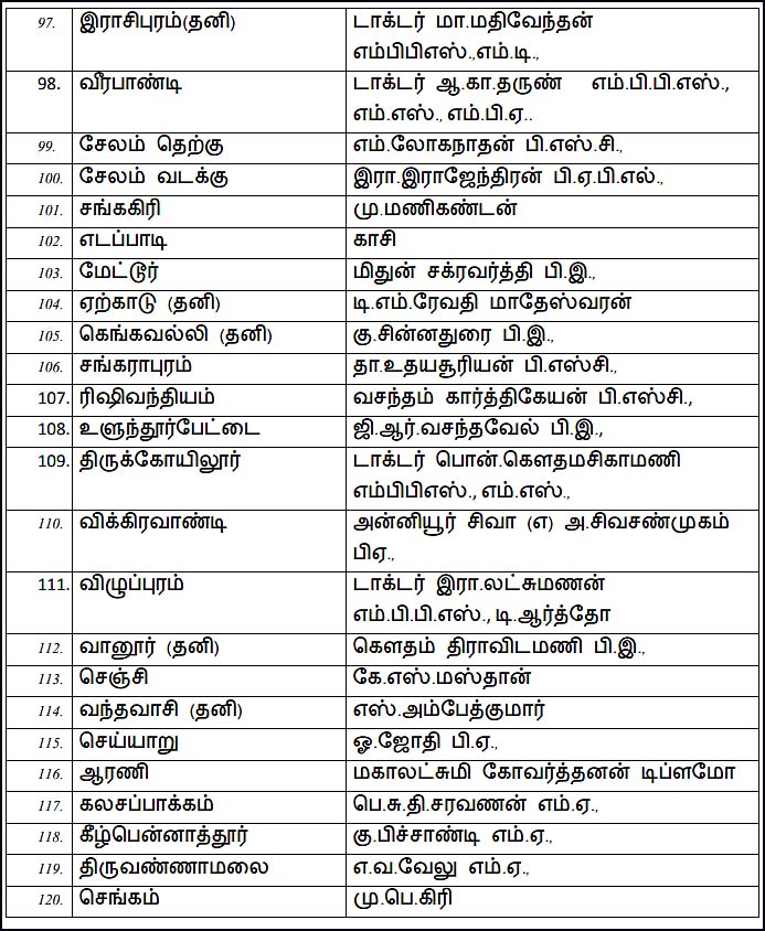 அதன்படி 164 தொகுதிகளில் தி.மு.க வேட்பாளர்களின் விவரங்கள் வருமாறு:-