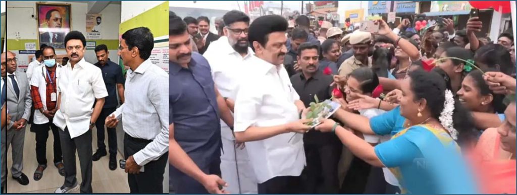 இதற்கிடையே, விழுப்புரம் மாவட்டம் திண்டிவனம் அருகே உள்ள ஒலக்கூர் ஆரம்ப சுகாதார நிலையத்தில் முதலமைச்சர் மு.க.ஸ்டாலின் திடீர் ஆய்வு மேற்கொண்டார். தொடர்ந்து அங்கிருந்து புறப்பட்டு திண்டிவனம் நகரில் சென்னை சாலையில் மேம்பாலம் வழியாக ஜே.வி.எஸ். திருமண மண்டபம் வரை ரோடு ஷோ நடத்தினார். அங்கு முதலமைச்சர் மு.க.ஸ்டாலின், பொதுமக்களை சந்தித்து மனுக்களை பெற்றுக் கொண்டார்.