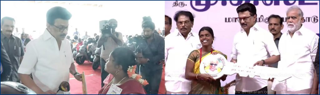 இதன் தொடர்ச்சியாக “கலைஞரின் கனவு இல்லம்” திட்டத்தின் ஒரு இலட்சமாவது பயனாளிக்கு வீட்டிற்கான சாவியினை முதலமைச்சர் மு.க.ஸ்டாலின் அவர்கள் வழங்கினார். செங்கோட்டை ஊராட்சி ஒன்றியம், இலத்தூர் கிராமத்தைச் சேர்ந்த திருமதி.மு.சுமதி அவர்களிடம் வீட்டிற்கான சாவியினை வழங்கினார்.
