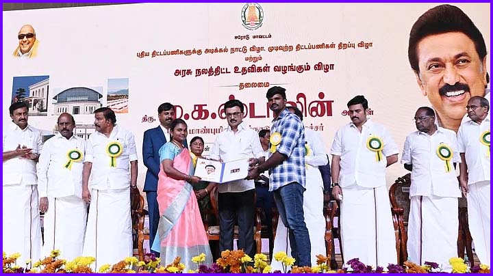 57 ஆயிரத்து 763 மாணவ மாணவியருக்கு மிதிவண்டிகள் தரப்பட்டிருக்கிறது. · 3 ஆயிரத்து 771 மாற்றுத்திறனாளிகளுக்கு உதவிக் கருவிகள் வழங்கப்பட்டிருக்கிறது.