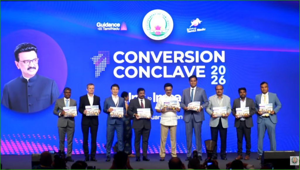 சென்னை கிண்டியில் Guidance Tamil Nadu சார்பில் நடைபெறும் “CONVERSION CONCLAVE 2026” தொடங்கி வைத்த முதலவர ஸ்டாலின், ரூ.74,267 கோடி மதிப்பில் திட்டங்களை முதலமைச்சர் தொடங்கி வைத்தார். அதன்படி, டாபர், மகேந்திரா ஆராய்ச்சி மையம், பிரிட்டானியா, லூலூ குரூப், டாடா கெமிக்கல்ஸ் ஆலை, இ மேக் அண்ட் ஜீனிஸ், கெயின்ஸ் சர்கியூட், ஜான்சன் எலக்ட்ரிக், விவிடிஎன் டெக்னாலஜி நிறுவனங்களுக்கு முதல்வர் அடிக்கல் நாட்டினார்.