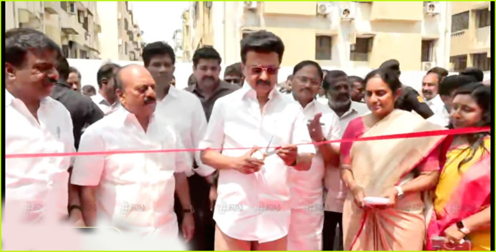சென்னை தேனாம்பேட்டை, மயிலாப்பூர், கோட்டூர்புரத்தில் நகர்ப்புற வாழ்விட மேம்பாட்டு வாரியம் சார்பில் ரூ.1,261 கோடியில் கட்டப்பட்ட 5,367 அடுக்குமாடி குடியிருப்பு வீடுகளை முதல்வர் மு.க.ஸ்டாலின் திறந்து வைத்தார்