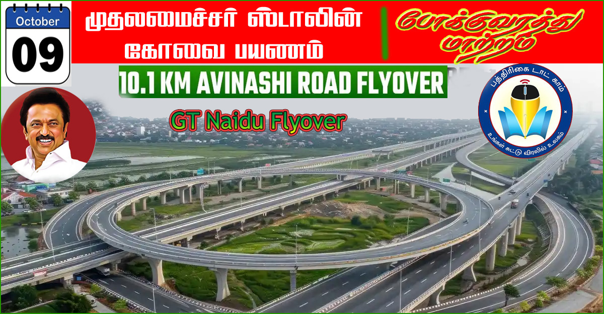 கோவையை அடுத்த அவினாசி பகுதியில் 10 கிலோமீட்டர் தூரத்துக்கு 17.25 மீட்டர் அகலத்தில் உயர்மட்ட பாலம் கட்டப்பட்டு உள்ளது. இந்த பாலத்துக்கு ஜிடி நாயு பாலம் என பெயர் வைக்கப்படும் என அறிவித்துள்ள முதல்வர் ஸ்டாலின், இந்த பாலத்தை திறந்து வைப்பதற்காக நாளை மறுதினம் கோவை செல்ல உள்ளார். இதையடுத்து, மேலும் சில நிகழ்ச்சிகளிலும் கலந்துகொள்வார் என எதிர்பார்க்கப்படுகிறது.