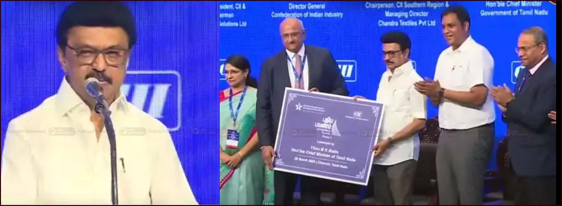 சென்னையில் சிஐஐ தென் இந்திய மாநாடு இன்று தொடங்கி உள்ளது. சென்னை கிண்டி ஐடிசி கிராண்ட் சோழா ஓட்டலில் நடைபெற்று வரும் இந்த மாநாட்டில் தமிழக முதலமைச்சர் மு.க.ஸ்டாலின் சிறப்பு விருந்தினராக கலந்துகொண்டு சி ஐஐ தென் இந்திய மாநாட்டை தொடங்கி வைத்து சிறப்புரை ஆறிறினார். அப்போது அவர் பேசியதாவது,