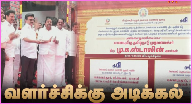 கொளத்தூரில் வடசென்னை வளர்ச்சித் திட்டத்தின் கீழ் கட்டப்பட்டுள்ள ரூ.25.72 கோடியில் குளிர்சாதன வசதி உள்ளிட்ட அனைத்து வசதிகளுடன் கூடிய பேரறிஞர் அண்ணா திருமண மாளிகை, ரூ.17.47 கோடி மதிப்பீட்டில் ஜி.கே.எம். காலனி அரசு மாதிரி மேல்நிலைப் பள்ளி மற்றும் பெரியார் நகர் அமுதம் அங்காடி பணிகளை தொடங்கி வைத்தார் முதலமைச்சர் மு.க.ஸ்டாலின்.