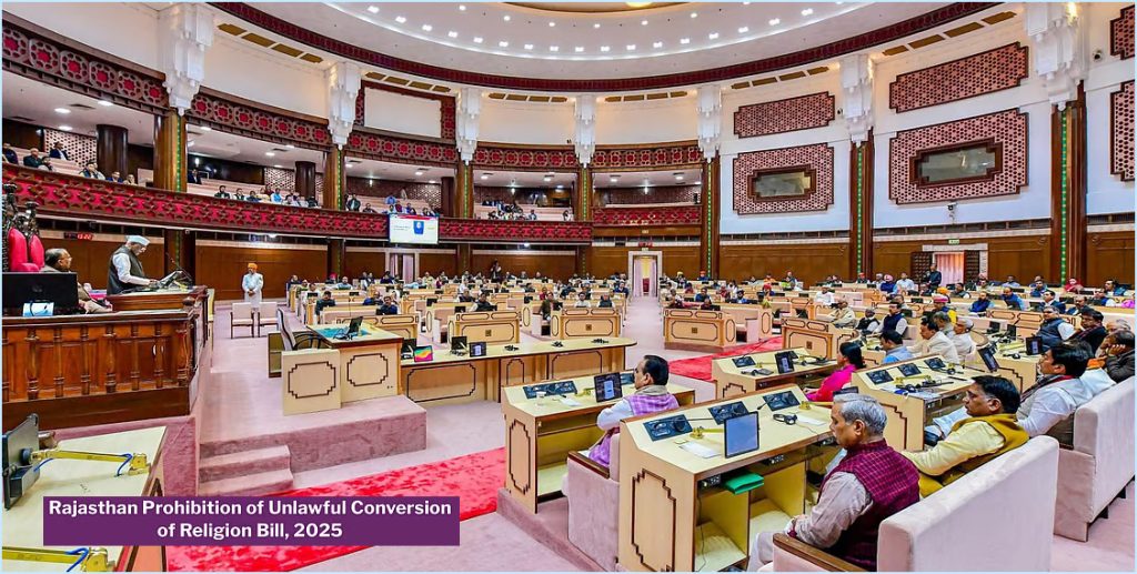 ஜெய்ப்பூர்: சட்டவிரோதமாக மதமாற்றத்தில் ஈடுபட்டால் ஜாமினில் வெளிவர முடியாத வகையில், 10 ஆண்டு சிறைதண்டனை மற்றும் அபராதம் விதிக்கும் வகையில் ராஜஸ்தான் சட்டப்பேரவையில் புதிய திருத்த மசோதா தாக்கல் செய்யப்பட்டு உள்ளது.