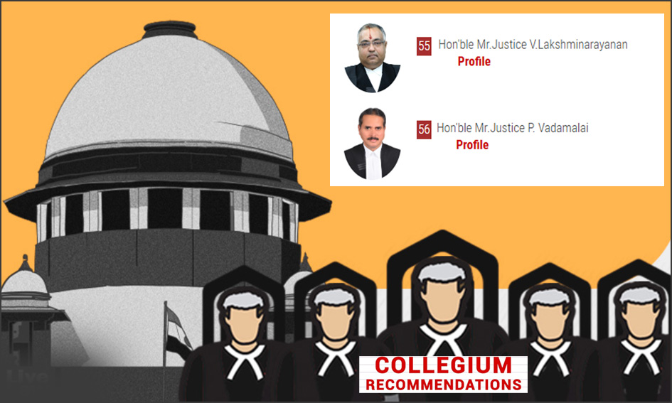 டெல்லியில் உச்சநீதிமன்ற கொலீஜியத்தின் கூட்டம் நடைபெற்றது. அப்போதுசென்னை உயர்நீதிமன்றத்தில் கூடுதல் நீதிபதிகளாக பணிபுரிந்து வரும் நீதிபதி வெங்கடாச்சாரி லட்சுமிநாராயணன் மற்றும் நீதிபதி பெரியசாமி வடமலை ஆகியோரை நிரந்தர நீதிபதியாக்க முடிவு செய்யப்பட்டுள்ளது.