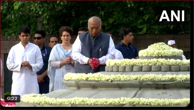 நாடு முழுவதும் மறைந்த காங்கிரஸ் தலைவரும் முன்னாள் பிரதமருமான ராஜீவ் காந்தியின் பிறந்த நாள் இன்று கொண்டாடப்படுகிறது. இந்த நிலையில், டெல்லியில் உள்ள ராஜீவ் காந்தியின் நினைவிடமான வீர் பூமியில் காங்கிரஸ் தலைவர் மல்லிகார்ஜுன கார்கே தலைமையில் மூத்த தலைவர்கள் மலர்தூவி மரியாதை செலுத்தினர்.
