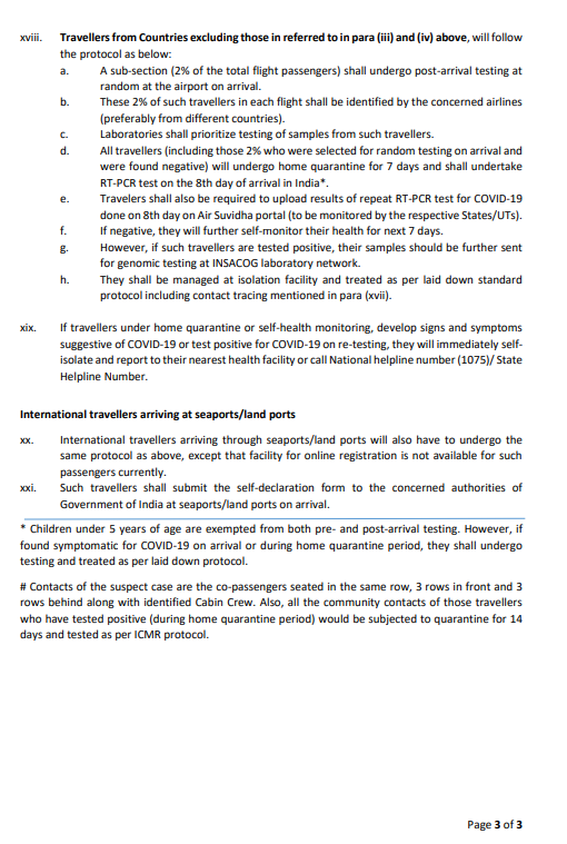 இந்த நிலையில், சர்வதேச அளவில்  இருந்து இந்தியா வரும்  அனைவரும் 7 நாள் கட்டாய வீட்டுத் தனிமைப்படுத்தலுக்கு உட்படுத்தப்பட வேண்டும் என்றும் இந்திய அரசு உத்தரவிட்டு உள்ளது. மேலும், 7 வீட்டு தனிமை முடிந்தபிறகு ஆர்டி பிசிஆர் சோதனை செய்யப்படும் என்றும், அதன் முடிவு வந்தபிறகே அவர்கள் வெளியே செல்ல அனுமதிக்கப்படுவார்கள் என்றும் தெரிவிக்கப்பட்டுள்ளது.