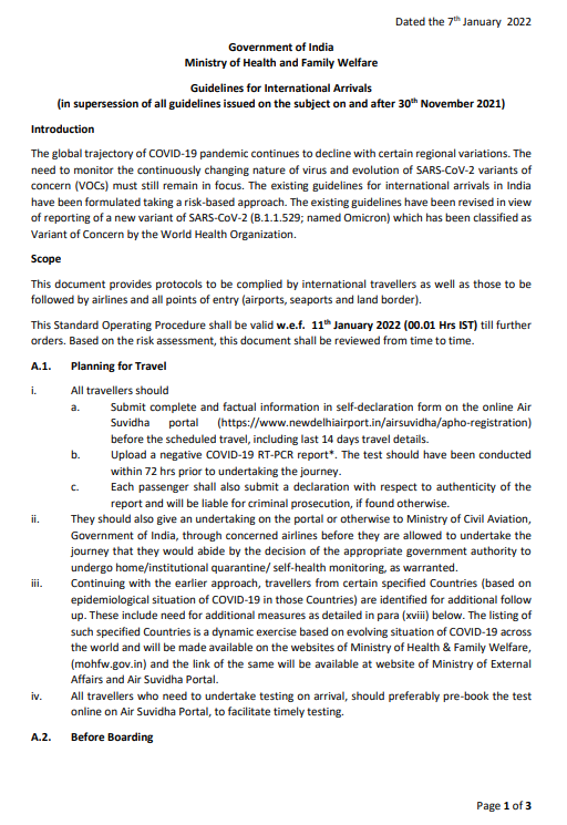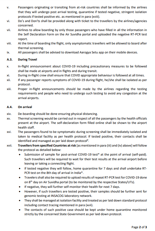 இந்த நிலையில், சர்வதேச அளவில்  இருந்து இந்தியா வரும்  அனைவரும் 7 நாள் கட்டாய வீட்டுத் தனிமைப்படுத்தலுக்கு உட்படுத்தப்பட வேண்டும் என்றும் இந்திய அரசு உத்தரவிட்டு உள்ளது. மேலும், 7 வீட்டு தனிமை முடிந்தபிறகு ஆர்டி பிசிஆர் சோதனை செய்யப்படும் என்றும், அதன் முடிவு வந்தபிறகே அவர்கள் வெளியே செல்ல அனுமதிக்கப்படுவார்கள் என்றும் தெரிவிக்கப்பட்டுள்ளது.