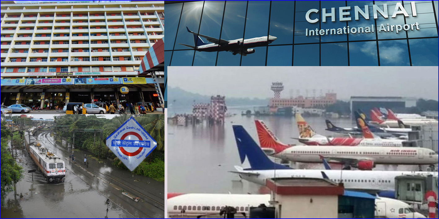 அதன்படி, நண்பகல் 12 மணிமுதல் இரவு 7 மணிவரையில், சென்னை விமான நிலையத்தின் சேவைகள் ரத்து செய்யப்படுவதாக சென்னை விமான நிலைய நிர்வாகம் (Chennai Airport Authority) அறிவித்து இருக்கிறது. விமான நிலையத்தின் ஓடுபாதைகளில் வெள்ளநீர் சூழ்ந்து இருப்பதாலும், தொடர் கனமழை, மோசமான சீதோஷ்ணநிலை காரணமாக விமான நிலையம் தற்காலிகமாக மூடப்படுவதாக அறிவிக்கப்பட்டுள்ளது.