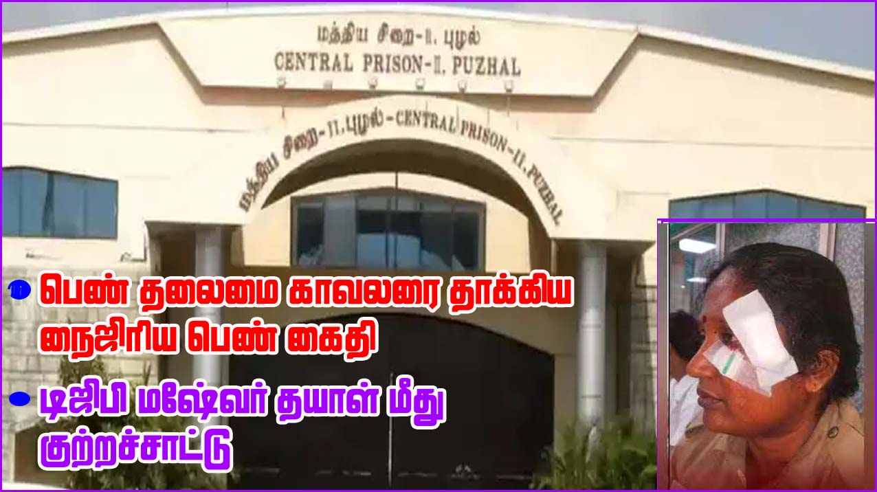 புழல் சிறையில் பெண் காவலர் மீது வெளிநாட்டு (நைஜிரியா) நாட்டு பெண் கைதியா மோனிகா தாக்குதல் நடத்தி உள்ளார். இதனால் சரஸ்வதியின் முகம் உள்பட பல இடங்களில் கத்தி குத்து உள்பட படுகாயம் ஏற்பட்டது. இது பெரும்பரபரப்பை ஏற்படுத்தி உள்ளது. சிறைத்துறை விஷயங்களில் கூடுதல் டி.ஜி.பி., மகேஷ்வர் தயாள் முறையாக நடவடிக்கை எடுப்பது இல்லை என்று பெண் சிறை காவலர்கள் குற்றம் சாட்டி உள்ளனர். அதனால்தான், இன்று ஒரு கைதி, சிறையி தலைமை பெண் காவலரை தாக்கும் அளவுக்கு வந்துள்ளார் என தெரிவித்துள்ளனர்.