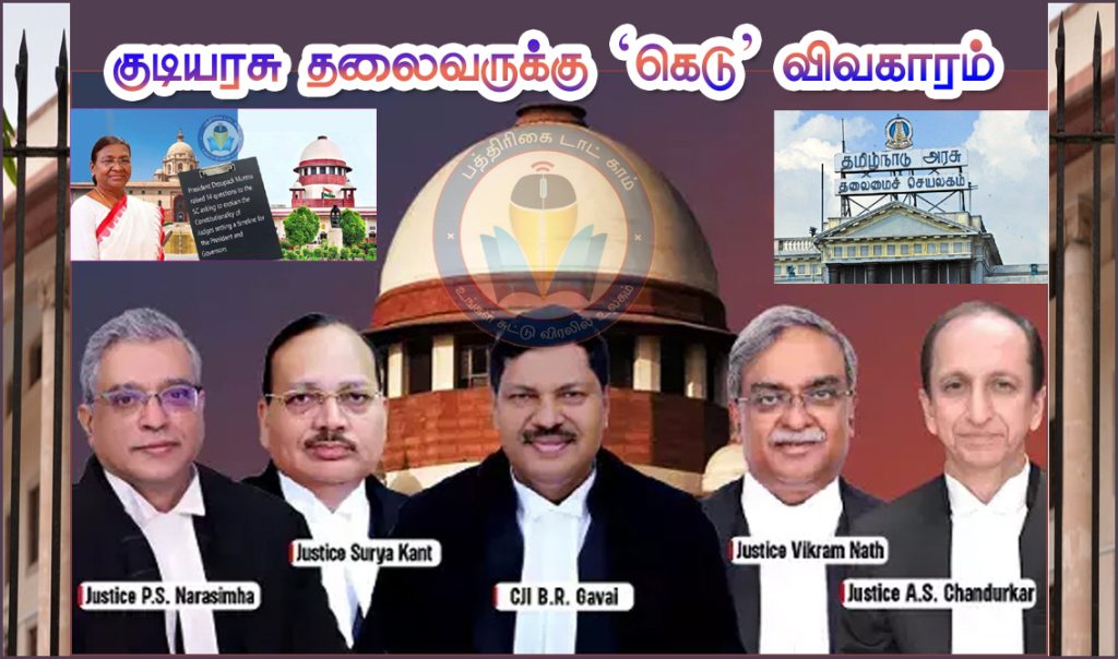 இந்த நிலையில் உச்ச நீதிமன்றத்தின் தலைமை நீதிபதி பி.ஆர்.கவாய்க்கு, சுமார் 14 கேள்விகளுக்கு குடியரசுத் தலைவர் திரெளபதி முர்மு விளக்கம் கேட்டு கடிதம் எழுதி அனுப்பி இருந்தார். இதுகுறித்து விசாரணை நடத்திய உச்சநீதிமன்ற அரசியல் சாசன அமர்வு, இது தொடர்பாக அனைத்து மாநிலங்களும் உச்ச நீதிமன்றம் நோட்டீஸ் பிறப்பித்தது.