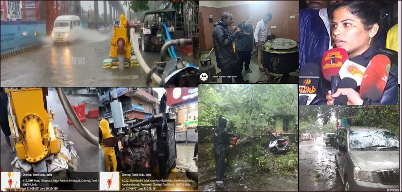இந்த நிலையில், செய்தியளார்களை சந்தித்த மாநகராட்சி மேயர் பிரியா, சென்னையில் மழைநீர் தேங்கிய பகுதிகளில் உடனுக்குடன் மழைநீர் வெளியேற்றப்பட்டு வருகிறது என்றவர், மழையை எதிர்கொள்ள சென்னை மாநகராட்சி சார்பில் அனைத்து முன்னெச்சரிக்கை நடவடிக்கைகளும் எடுக்கப்பட்டுள்ளன என்றவர், தொடர்ந்து மழை பெய்வதால் ஒருசில இடங்களில் தண்ணீர் தேங்கியுள்ளது என்றும், ஓஎம்ஆர் பகுதியில் நெடுஞ்சாலை துறையுடன் இணைந்து மாநகராட்சி பணிகளை மேற்கொண்டு வருவதாக தெரிவித்தவர், சூறாவளியால் மரங்கள் உடைந்த இடங்களில் அதை அகற்றும் பணி நடைபெற்று வருகிறது என்றவர், பொதுமக்கள் அவசியமின்றி வெளியே வர வேண்டாம் என கூறியுள்ளார்.