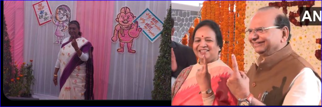 மேலும் மத்திய அமைச்சர் ஜெய்சங்கர் உள்பட பல அமைச்சர்கள், மாநில அமைச்சர்கள் என பல தரப்பினரும் தங்களது வாக்குகளை செலுத்தி வருகின்றனர்.