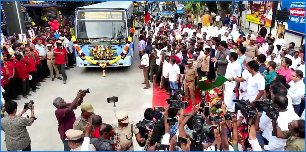 சென்னையை அடுத்த அம்பத்தூர் தொழிற்பேட்டையில் ரூ.14 கோடியில் கட்டி முடிக்கப்பட்டுள்ள பேருந்து நிலையத்தை துணை முதல்வர் உதயநிதி ஸ்டாலின் இன்று திறந்து வைத்தார். தொடர்ந்து அங்கு அலங்கரித்து நிறுத்தப்பட்டிருந்த பேருந்துகளை, துணை முதல்வர் உதயநிதி ஸ்டாலின் இன்று கொடியசைத்துவைத்து, தொடங்கி வைத்துள்ளார்.
