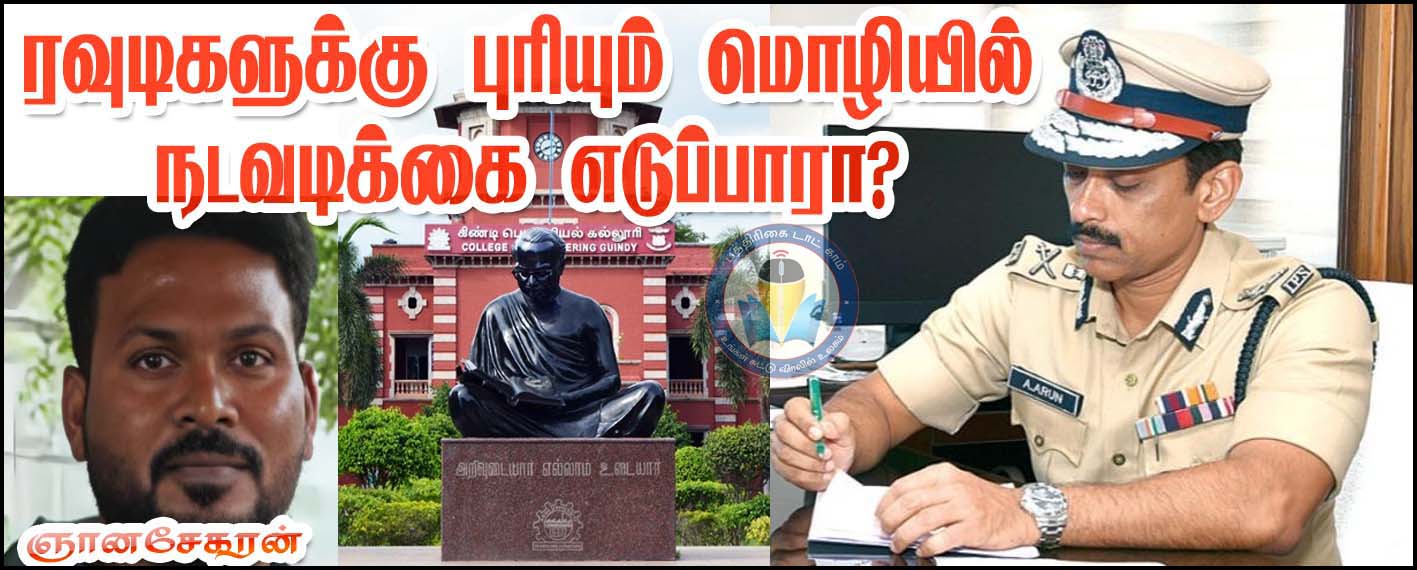 சென்னை: ரவுடிகளுக்கு புரியும் மொழியில் நடவடிக்கை என சூளுரைத்து சென்னை மாநகர காவல் ஆணையராக பொறுப்பேற்ற டிஜிபி அருண், சென்னையை உலுக்கியுள்ள நாட்டின் மிகச்சிறந்த பல்கலைக்கழகங்களுல் ஒன்றான கிண்டி அண்ணா பல்கலைக்கழகத்தில் நடைபெற்ற பாலியல் பலாத்காரம் விஷயத்தில், ரவுடிகளுக்கும், பாலியல் குற்றவாளிகளுக்கும் புரியும் வகையில் நடவடிக்கை எடுப்பாரா என சமூக வலைதளங்களில் கேள்வி எழுப்பப்பட்டு வருகிறது.