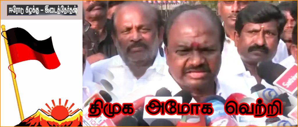 தேர்தலில் பதிவான வாக்குகள் இன்று  (பிப்ரவரி 5ந்தேதி) காலை 8மணி முதல் எண்ணப்பட்டன. முதலில்  தபால் ஓட்டுகள் எண்ணப்பட்டது. இதையடுத்து மின்னணு வாக்குப்பதிவு இயந்திரங்ளில் பதிவான ஓட்டுகள் எண்ணப்பட்டது. வாக்கு எண்ணிக்கை தொடங்கியதில் இருந்தே தி.மு.க. வேட்பாளர் சந்திரகுமார் முன்னிலை வகித்து வருகிறார்.