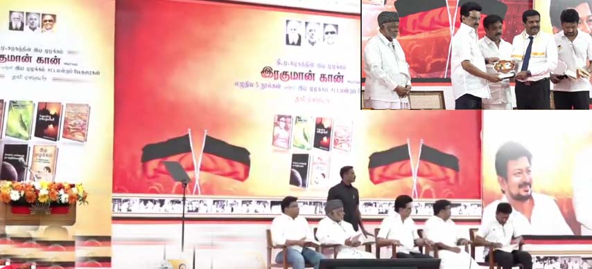 தொடர்ந்து நிகழ்ச்சியில் உரையாற்றிய முதல்வர் மு.க.ஸ்டாலின்; ரகுமான்கான் எழுத்துக்கும் பேச்சுக்கும் ரசிகன் நான்; அவர் ஒரு நட்சத்திரப் பேச்சாளர்.நியாயங்களின் பயணம், மௌனமாய் உறங்கும் பனித்துளிகள், உலகமறியா தாஜ்மஹால்கள், பூ பூக்கும் இலையுதிர் காலம், வானம் பார்க்காத நட்சத்திரங்கள் ஆகிய நூல்களை வெளியிட்டார். தொடர்ந்து நிகழ்ச்சியில் உரையாற்றிய முதல்வர் மு.க.ஸ்டாலின்; ரகுமான்கான் எழுத்துக்கும் பேச்சுக்கும் ரசிகன் நான்; அவர் ஒரு நட்சத்திரப் பேச்சாளர்.