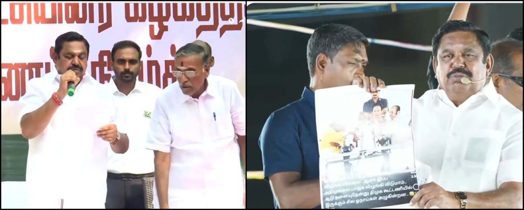 ஆட்சியில் இல்லாவிட்டாலும் மக்கள் பிரச்னையை தீர்ப்பதற்கு முன்னோடியாக இருந்தது அதிமுக. என்று கூறியவர், கச்சைத்தீவை தார்த்தவர்கள் திமுக காங்கிரஸ் என கூறியதுடன், இதை மக்களும், மீனவர்களும் மறக்கவில்லை. நாடகம் ஆடாதீர்கள் என்று கூறியதுடன், கள்ளக்குறிச்சி போகாமல் கரூருக்கு ஓடோடிச் சென்றது ஏன், அதிகாரத்தை அனுபவித்துவிட்டு இன்று கூக்குரலிடுகிறார் என கடுமையாக விமர்சித்தார்.