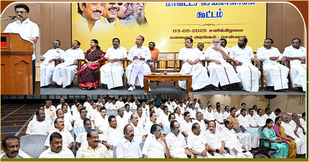 மேலும்,  ஜூன் 1ம் தேதி மதுரையில் திமுக பொதுக்குழுக் கூட்டம் நடைபெறும் என்றும்  திமுக மாவட்டச் செயலாளர்கள் கூட்டத்தில் முடிவு செய்யப்பட்டுள்ளது.