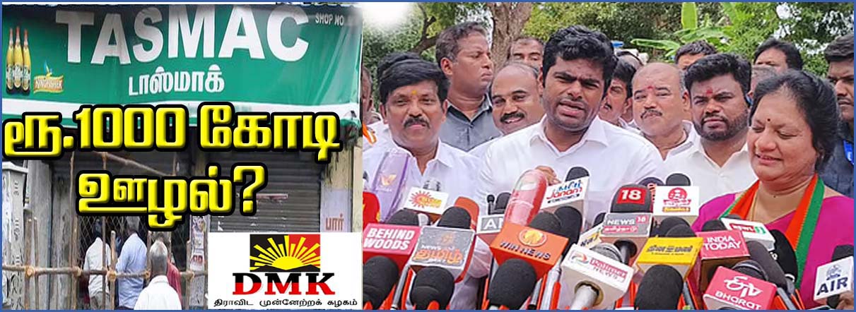 தமிழகத்தில் அரசு நடத்தும் டாஸ்மாக் நிறுவனத்துக்கு மதுபானங்கள் சப்ளை செய்யும், மதுபான ஆலைகளில் 1000 கோடி ரூபாய் அளவிற்கு முறைகேடு நடந்திருப்பதாக பாஜக மாநிலத் தலைவர் அண்ணாமலை குற்றம் சாட்டியுள்ளார்.