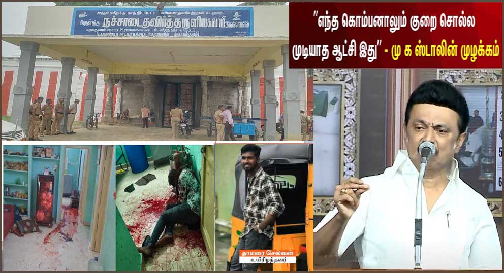 தமிழ்நாட்டில் நேற்று ஒரேநாளில் பல்வேறு வன்முறை சம்பவங்கள் அரங்கேறியுள்ளன. குறிப்பாக திருச்சி படுகொலை, ராஜபாளையம் படுகொலை, சென்னையில் கவுன்சிலர் அலுவலகம் மீது குண்டு, போதை பொருள் கடத்தல் நபர் கைது என பல அசம்பாவிதங்கள் நடைபெற்றது. இதை எதிர்க்கட்சிகள் கடுமையாக கண்டித்து வருகின்றன.