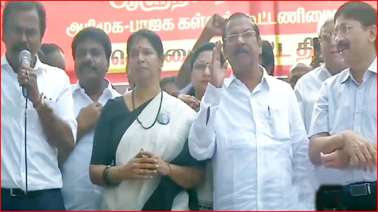 இதுபோல மாநிலம் முழுவதும் மாவட்ட தலைநகரங்களில் திமுக ஆர்ப்பாட்டம் நடைபெற்றது.