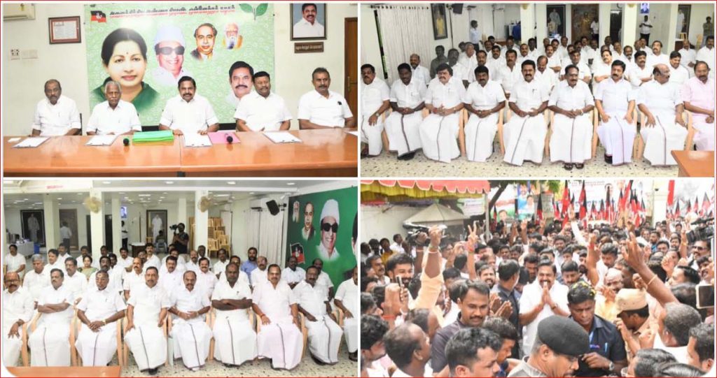 அதிமுக மாவட்டக் கழகச் செயலாளர்கள் ஆலோசனைக் கூட்டம் சென்னை, இராயப்பேட்டையில் உள்ள தலைமைக் கழகமான புரட்சித்தலைவர் எம்ஜிஆர் மாளிகையில் நடைபெற்று வருகிறது.