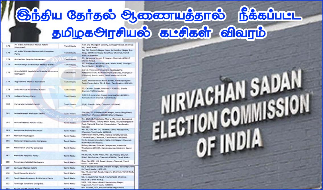 அரசியல் கட்சி தொடங்கி ஆறு ஆண்டுகள் தேர்தல் களத்தில் பங்கு பெறாத, மற்றும் அரசியல் கட்சியாக பதிவு செய்யும் போது வழங்கிய அலுவகத்தில் இயங்காத அரசியல் கட்சியை அடையாளம் கண்டு அதன் பட்டியலை இந்திய தேர்தல் ஆணையம் வெளியிட்டுள்ளது.