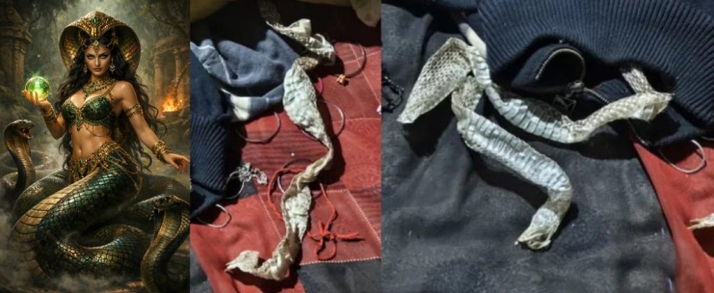 சிங்கன்பூர் கிராமத்தைச் சேர்ந்த 24 வயதான ரீனா, ஞாயிறு இரவு வீட்டில் இருந்து மாயமானார். திங்கள்கிழமை காலை அவரது படுக்கையில் சுமார் 5 அடி நீளமுள்ள பாம்பு தோல், வளையல்கள், மோதிரங்கள், உடைகள் கிடந்ததை பார்த்த குடும்பத்தினர், “எங்கள் மகள் நாகினியாக (பாம்பு) மாறிவிட்டார்” என பரபரப்பை ஏற்படுத்தினர்.