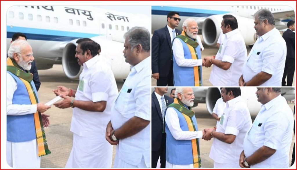 கோவை கொடிசியா வளாகத்தில் தென்னிந்திய இயற்கை வேளாண்மை கூட்டமைப்பின் சார்பாக 3 நாள் மாநாடு நடைபெறுகிறது. இந்த மாநாட்டை தொடங்கி வைக்க வந்த பிரதமரை, எடப்பாடி பழனிச்சாதி உள்பட பல்வேறு தரப்பினர் வரவேற்றனர். கோவை விமான நிலையத்தில் பிரதமரை வரவேற்ற அதிமுக பொதுச்செயலாளரும், எதிர்க்கட்சித் தலைவருமான எடப்பாடி பழனிசாமி, பிரதமரிடம் பல்வேறு கோரிக்கைகள் அடங்கிய மனுவை அளித்தார்.
