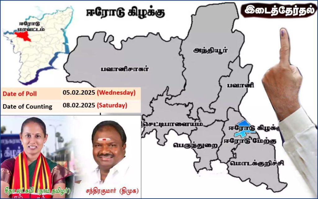 இவிகேஎஸ் இளங்கோவன் மறைவைத் தொடர்ந்து, ஈரோடு கிழக்கு தொகுதிக்கு இடைத்தேர்தல் அறிவிக்கப்பட்டு உள்ளது. இதையடுத்து, அங்கு பிப்ரவரி 5-ந்தேதி வாக்குப்பதிவு நடைபெறுகிறது. வாக்கு எண்ணிக்கை பிப்ரவரி 8ந்தேதி நடைபெற உள்ளது. இதையொட்டி, அங்கு வேட்புமனு தாக்கல் ஜனவரி 10-ந் தேதி தொடங்கி 18-ந்தேதி வரை நடைபெற்றது.