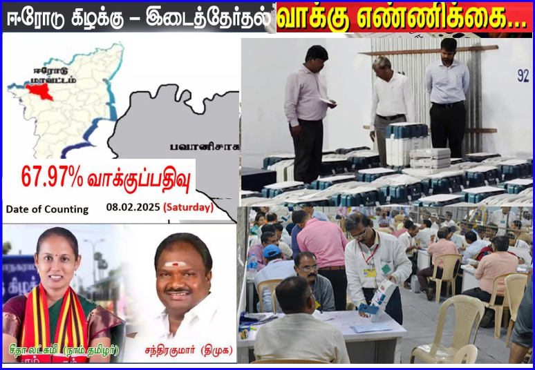 ஈரோடு: இடைத்தேர்தல் நடைபெற்ற ஈரோடு கிழக்கு தொகுதியில் இன்று காலை 8 மணிக்கு வாக்கு எண்ணும்பணி தொடங்கியது. இந்த இடைத்தேர்தலில் 67.97 சதவீதம் வாக்குகள் பதிவாகியுள்ள நிலையில் எவ்வளவு வாக்குகள் வித்தியாசத்தில் திமுக வேட்பாளர் சந்திரகுமார் வெற்றிபெறுவார் என எதிர்பார்ப்பு எழுந்துள்ளது.