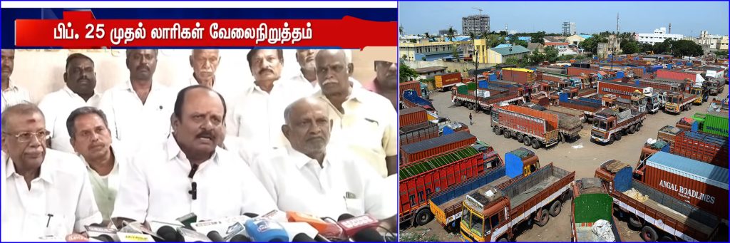 நாமக்கல்லில் நடைபெற்ற  லாரி உரிமையாளர்கள் சங்க  செயற்குழு கூட்டத்தில் எடுக்கப்பட்டுள்ள முடிவின்படி, 25ந்தேதி நள்ளிரவு முதல் லாரிகள் வேலை நிறுத்தம் தொடங்குகிறது.