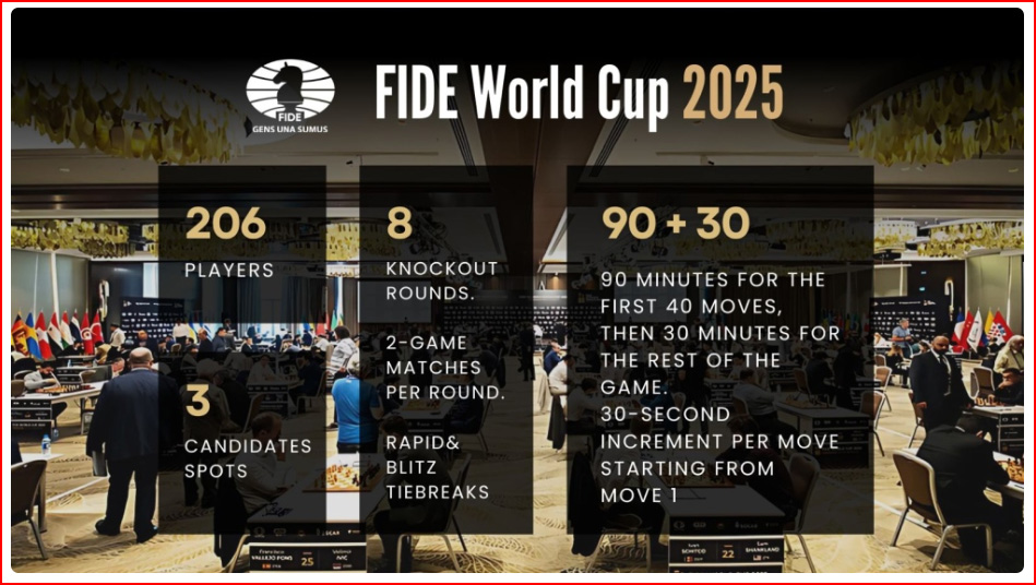இதற்கு முன்பு இந்தியா 2002ம் ஆண்டு ஹைதராபாத்தில் செஸ் உலகக் கோப்பையை நடத்தியது, அதில் விஸ்வநாதன் ஆனந்த் உல செஸ் சாம்பியன் பட்டத்தை வென்றார். நடப்பு உலக சாம்பியனான குகேஷ், 2023 உலகக் கோப்பையின் இரண்டாம் இடத்தைப் பிடித்த ஆர்.பிரக்ஞானந்தா, தற்போது உலக தரவரிசையில் ஐந்தாவது இடத்தில் உள்ள அர்ஜுன் எரிகைசி ஆகியோர் இந்த போட்டியில் பங்கேற்பார்கள் என எதிர்ப்பர்க்கப்படுகிறது.