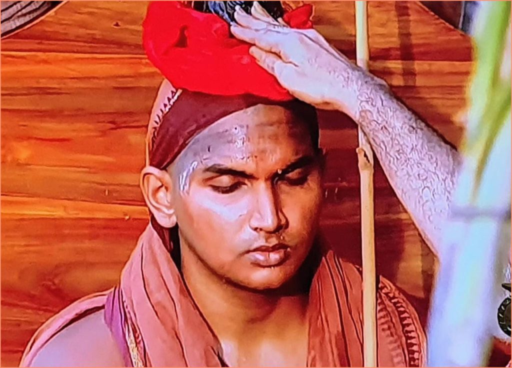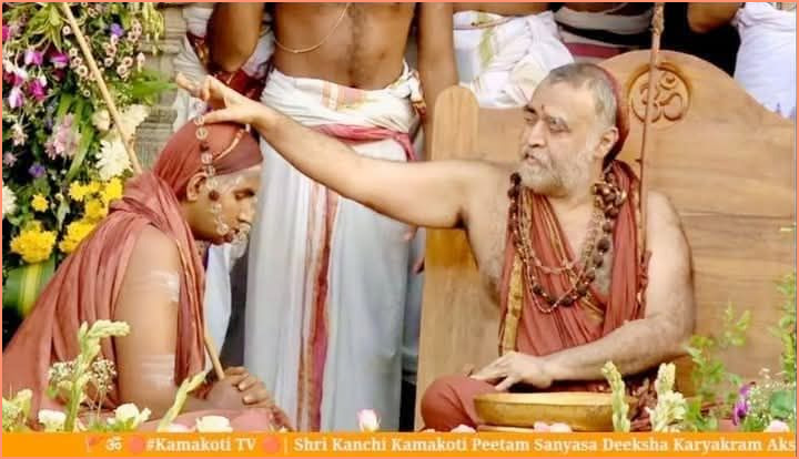 காமாட்சியம்மன் கோவிலில் உள்ள பஞ்ச கங்க தீர்த்த தெப்ப குளத்தில், நடந்த விழாவில் விஜயேந்திர சரஸ்வதி சுவாமிகள், கணேசசர்மாவுக்கு தீட்சை வழங்கி காவி வஸ்திரத்தை வழங்கினார். கணேசசர்மா பூணூல், அரைஞான் கயிற்றை துறந்தார். கமண்டலத்தையும், தண்டத்தையும் கணேசசர்மாவுக்கு விஜயேந்திரர் வழங்கினார்.
