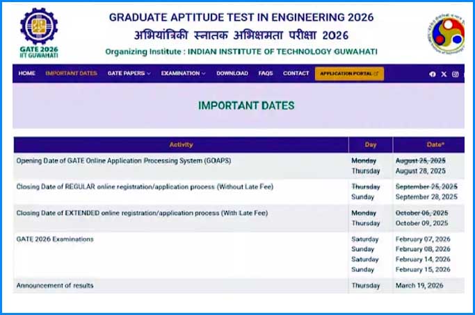 விண்ணப்பிக்க விரும்புபவர்கள் www.gate 2026.iitg.ac.in என்ற இணையதளத்தில் விண்ணப்பிக்கலாம். இதற்கான தேர்வு அடுத்த ஆண்டு (2026) பிப்ரவரி மாதம் 7, 8 மற்றும் 14, 15-ந் தேதிகளில் நடைபெற இருக்கிறது.