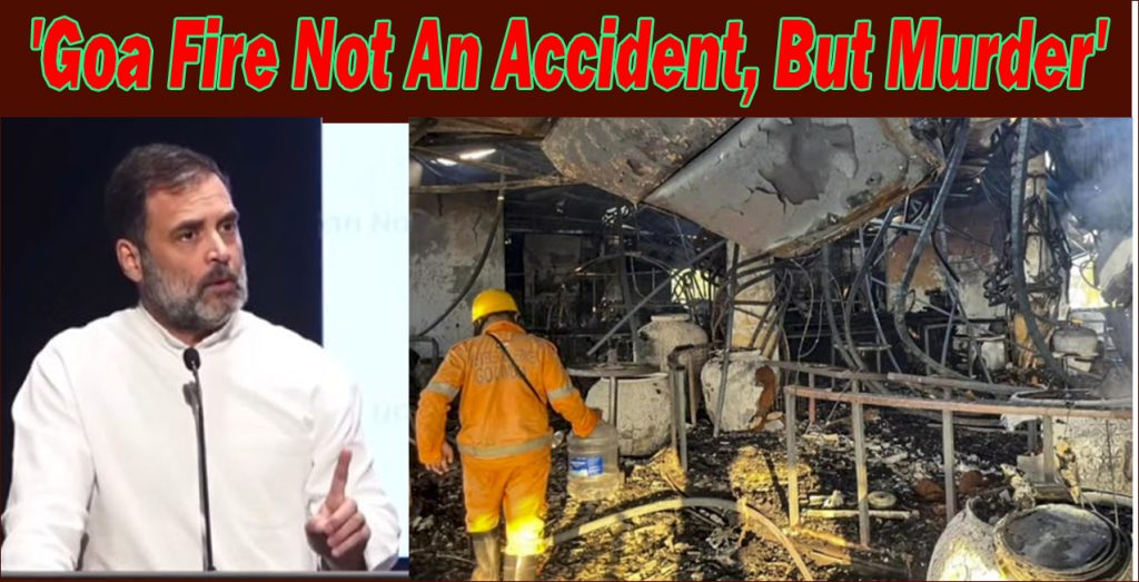 கோவா தீ விபத்துக்கு பொறுப்பு கோவா மாநில பாஜக அரசாங்கே என குற்றம் சாட்டும் ராகுல்காந்தி, இது மாநில நிர்வாகத்தின் குற்றவியல் தோல்வி என்றும், விபத்துஅல்ல கொலை, இதுகுறித்து முறையான விசாரணை நடத்தப்பட வேண்டும் என வலியுறுத்தி உள்ளார்.