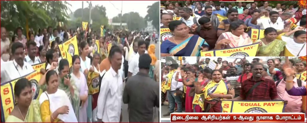 இதற்கிடையில், திமுக அரசு கொடுத்த வாக்குறுதியை நிறைவேற்றவில்லை என கூறி, பகுதிநேர ஆசிரியர்கள் போராட்டத்தை முன்னெடுத்து வருகின்றனர். அவர்கள் தினசரி ஒரு பகுதியில் போராட்டம் நடத்தி, போக்குவரத்தை ஸ்தம்பிக்க செய்து வருகின்றனர். அவர்களை கைது செய்ய காவல்துறையினர் மெனக்கெடுகின்றனர்.