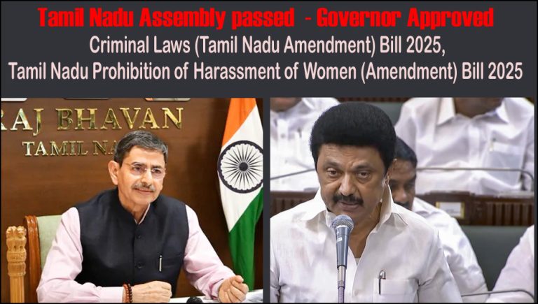 சென்னை: தமிழ்நாடு அரசு சமீபத்தில் சட்டப்பேரவையில் நிறைவேற்றிய பாலியல் குற்றங்களுக்கு கடும் தண்டனை விதிக்கும் திருத்த மசோதாகளுக்கு ஆளுநர் ஆர்.என்.ரவி ஒப்புதல் அளித்துள்ளார். அண்ணா பல்கலைக்கழகத்தில் மாணவி ஒருவர் பாலியல் வன்புணர்வு செய்யப்பட்ட விவகாரம் தமிழ்நாட்டில் பேரதிர்வை ஏற்படுத்தியது. அதுபோல மேலும் சம்பவங்களும் அரங்கேறி உள்ளன. இதுகுறித்து எதிர்க்கட்சிகள் கடுமையாக தமிழ்நாடு அரசையும், முதல்வர் ஸ்டாலினையும் விமர்சித்து வருகின்றன. இதைத் தொடர்ந்து, சமீபத்தில் நடைபெற்று முடிந்த சட்டப்பேரவை கூட்டத்தொடரில், பெண்களின் பாதுகாப்பை மேலும் வலுப்படுத்தும் வகையில், முதலமைச்சர் … Continue reading பாலியல் குற்றங்களுக்கு கடும் தண்டனை விதிக்கும் தமிழ்நாடு அரசின் திருத்த மசோதாகளுக்கு ஆளுநர் ஒப்புதல்!