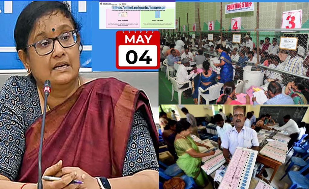 அதன்படி, மே 4ந்தேதி, முதலில் காலை 8:00 மணிக்குத் தபால் வாக்குகள் எண்ணும் பணி துவங்கும். 30 நிமிடங்களுக்கு பிறகு, அதாவது காலை 8:30 மணிக்கு மின்னணு வாக்குப்பதிவு இயந்திரத்தில் (EVM) பதிவு செய்யப்பட்ட வாக்குகள் எண்ணும் பணி துவங்கும் என அறிவிக்கப்பட்டு உள்ளது.