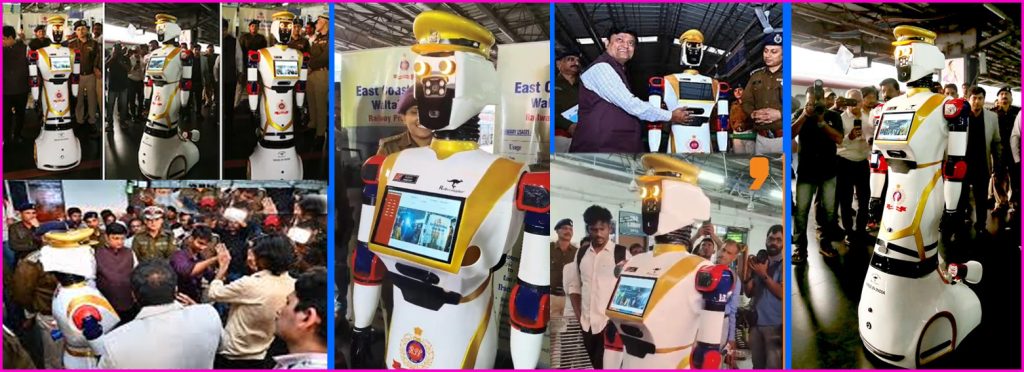 விசாகப்பட்டினம்:  இந்திய ரயில்வே வரலாற்றில் முதல் முறையாக ரயில் பயணிகள் பாதுகாப்பிற்கு மனித வடிவ ரோபோ  அறிமுகம் செய்யப்பட்டு உள்ளது.  ஏ.எஸ்.சி அர்ஜுன் என பெயரிடப்பட்டுள்ள இந்த ரோபோ,  விசாகப்பட்டினம் ரயில் நிலையத்தில் அறிமுகம் செய்யப்பட்டு உள்ளது.