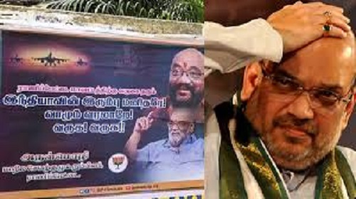 அமைச்சர் அமித்ஷாவுக்கு பதில் நடிகர் சந்தான பாரத்தியின் படத்துடன் பாஜக சுவரொட்டிகள் ஒட்டப்பட்டுள்ளன.