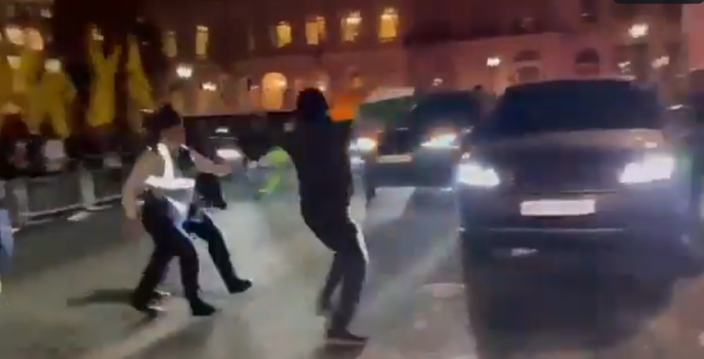 பின்னர் பேச்சுவார்த்தையை முடித்துக்கொண்டு வெளியே வந்த ஜெய்சங்கரின் கான்வாய் முன் ஓடிச் சென்ற ஒரு நபர் இந்திய கொடியை கிழித்தார்.