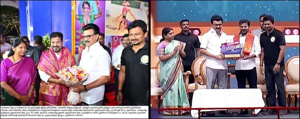 தங்கை கனிமொழி அவர்கள் மூலமாக, மாணவர்கள் நிகழ்ச்சி என்று சொல்லி அழைத்ததும், உடனே OK சொல்லி, பல பணிகளுக்கு இடையிலே இங்கே வந்திருக்கிறார். நம்முடைய அரசின் மகளிர் விடியல் பயணம் திட்டம் போலவே, தெலங்கானா மாநிலத்திலும், மகாலட்சுமி திட்டம் என்கிற பெயரில், பெண்களுக்கு கட்டணமில்லா பேருந்து பயணத்தை செயல்படுத்திக் கொண்டிருக்கிறார். அதேபோல, தெலங்கானா மாநிலத்தில் செயல்படுத்துகின்ற நல்ல திட்டங்களை தமிழ்நாட்டில் செயல்படுத்த நாங்களும் தயாராக இருக்கிறோம். இதுதான் ஆரோக்கியமான ‘வளர்ச்சி’ அரசியல்!