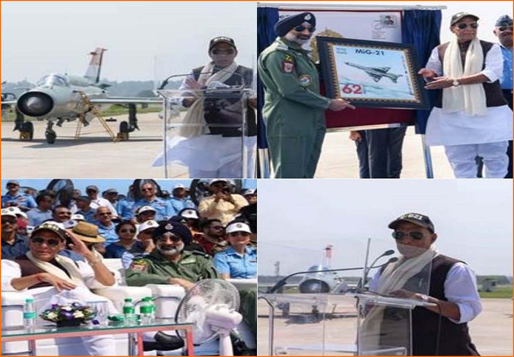 சண்டிகரில் நடந்த ஐஏஎஃப் மிக்-21 இன் பணிநீக்க விழாவில் பேசிய பாதுகாப்புத்துறை அமைச்சர் ராஜ்நாத் சிங், MiG-21 ஐ ஒரு வலிமையான இயந்திரம் மற்றும் ஒரு தேசிய பெருமை என்று வர்ணித்த பாதுகாப்பு அமைச்சர் ராஜ்நாத் சிங், எங்கள் நம்பிக்கையை வடிவமைத்த விமானத்தின் மீது ஆழமான பற்று உள்ளது என்றார். “MiG-21 ஒரு விமானம் அல்லது இயந்திரம் மட்டுமல்ல, ஆழமான இந்தியா-ரஷ்யா உறவுகளுக்கான சான்றாகும்” என்று அமைச்சர் கூறினார்.
