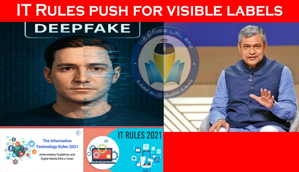 ‘டெல்லி: ஐடி விதியில் திருத்தம் செய்ய மத்தி யஅரசு முடிவு செய்துள்ளது. அதன்படி, டீப்பேக் வீடியோக்களில் முத்திரையிடுவது கட்டாயம் என அறிவிக்கப்பட்டு உள்ளது. இதுகுறித்து மக்களிடம் கருத்து கேட்டுள்ளது. 2021 ஆம் ஆண்டு ஐடி விதிகளின் கீழ் புதிய திருத்தங்கள் மூலம் டீப்ஃபேக்குகளை எதிர்கொள்ள இந்தியா விரும்புகிறது.