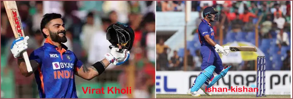 ஓப்பனிங் பேட்ஸ்மேனாக களம் இறங்கிய இஷான் கிஷன் 126 பந்தில் 24 பவுண்டரி, 10 சிக்ஸர்களுடன் 131 பந்துகளில் 210 ரன்கள் எடுத்து ஆட்டமிழந்தார். இஷான் கிஷானின் இரட்டை சதம் பெரும் சாதனையாக கருதப்படுகிறது. அவருடன் இணைந்து சிறப்பாக ஆடிய கோலியும் 113 ரன்கள் எடுத்த வெளியேறினார். கோலியும் வெகுநாட்களுக்கு பிறகு இன்று சதத்தை நிறைவு செய்துள்ளது அவரது ரசிகர்களிடையே பெரும் வரவேற்பை பெற்றுள்ளது. இந்த ஜோடி இணைந்து சிறப்பாக ஆடினார்.